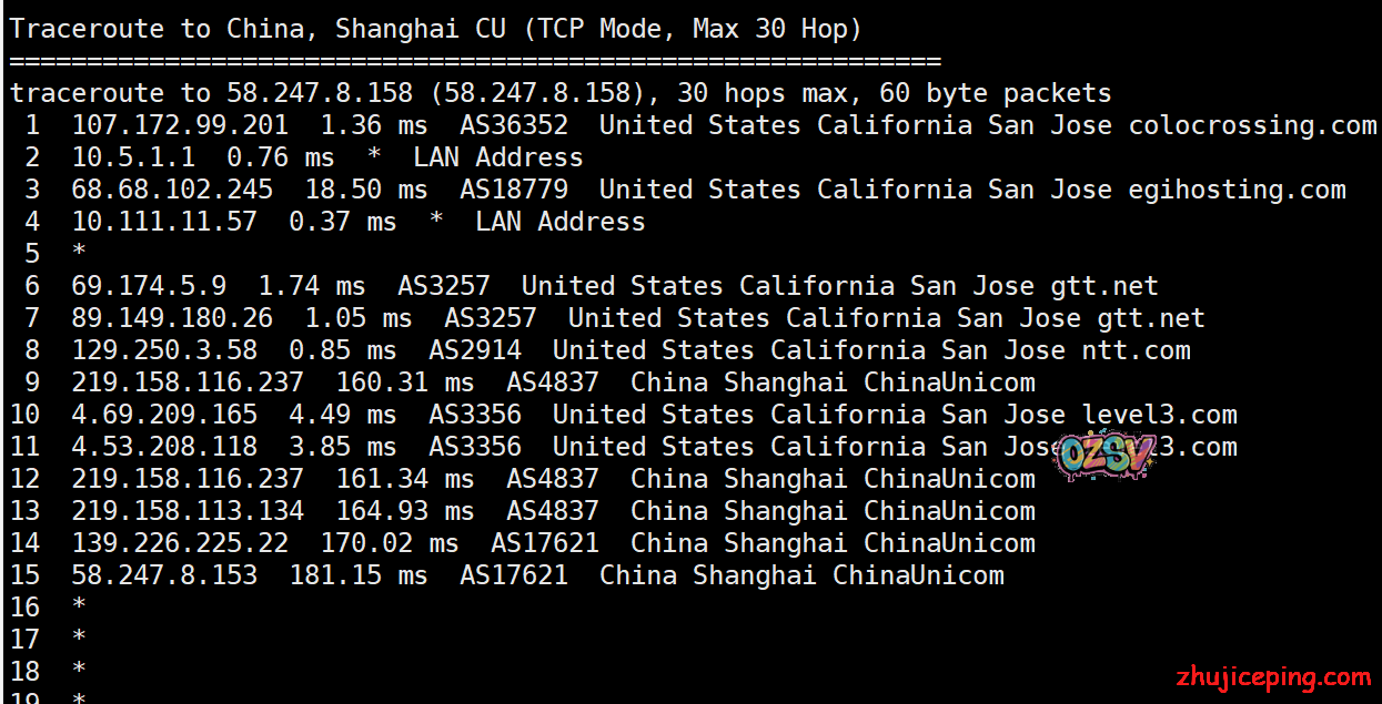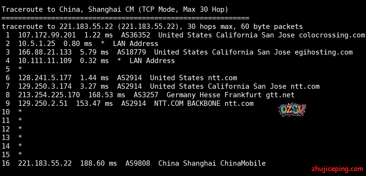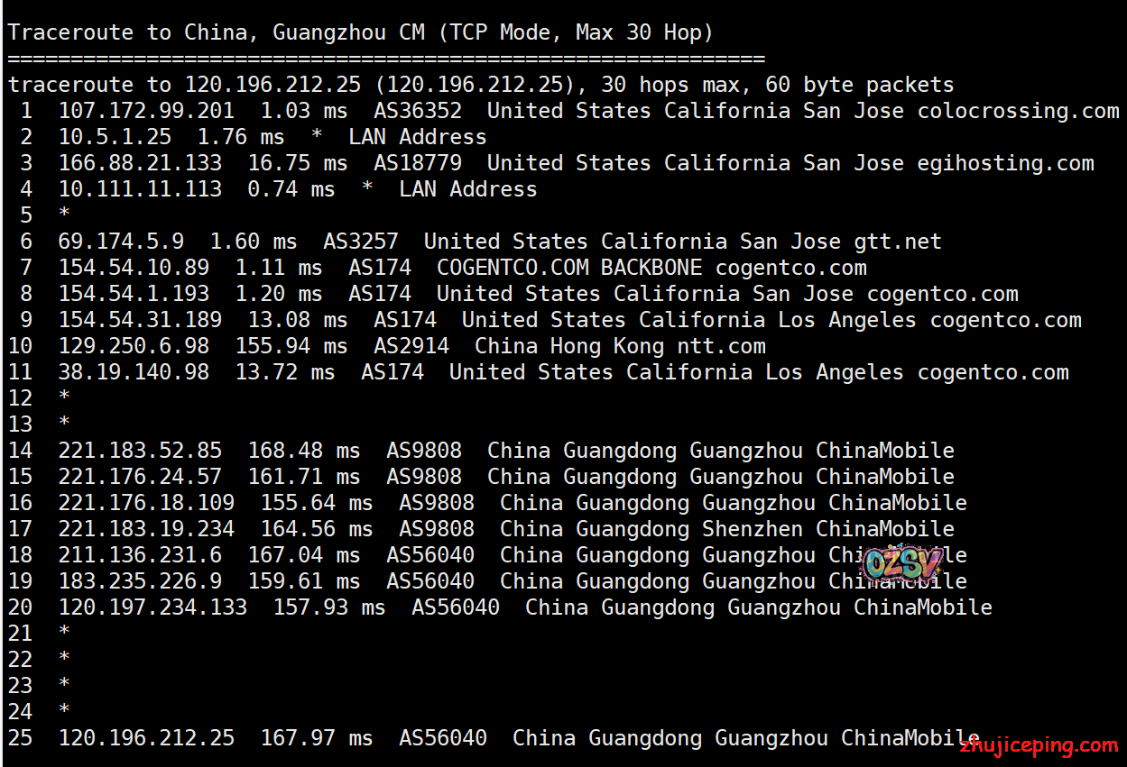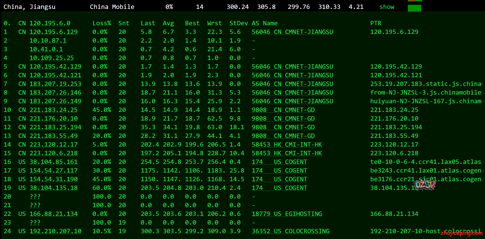 国内去程,电信和联通都是骨干网过去,移动香港CMI接cogentco