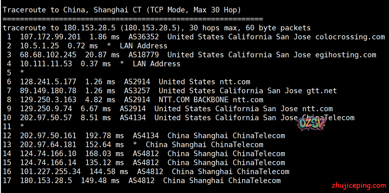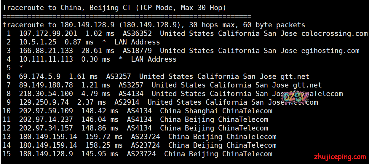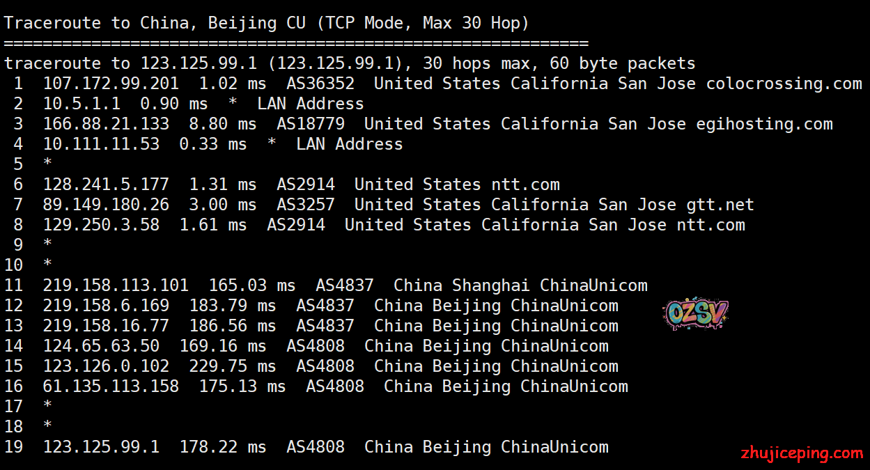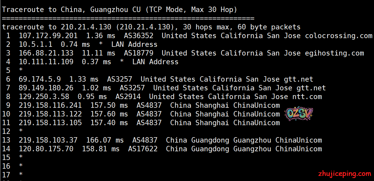 国内去程,电信和联通都是骨干网过去,移动香港CMI接cogentco