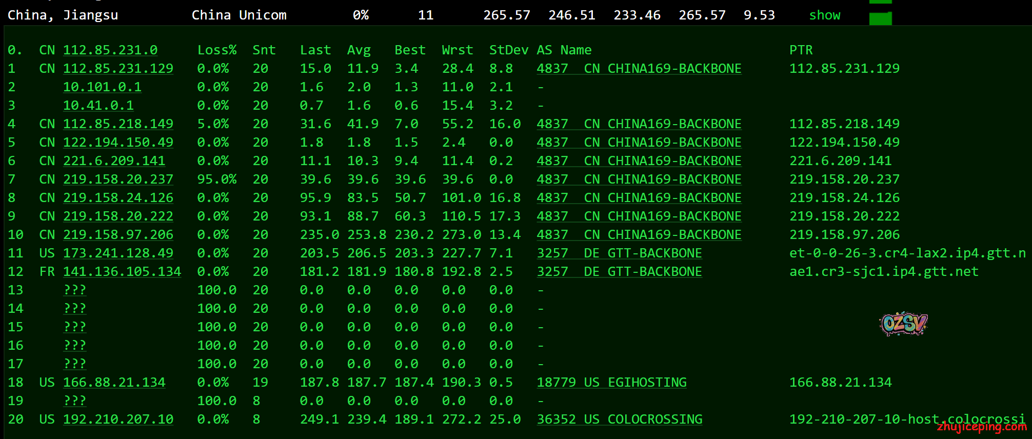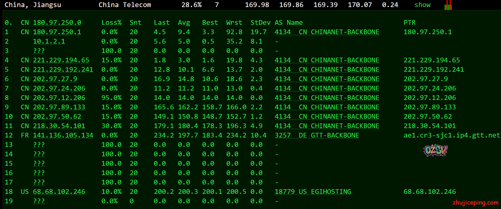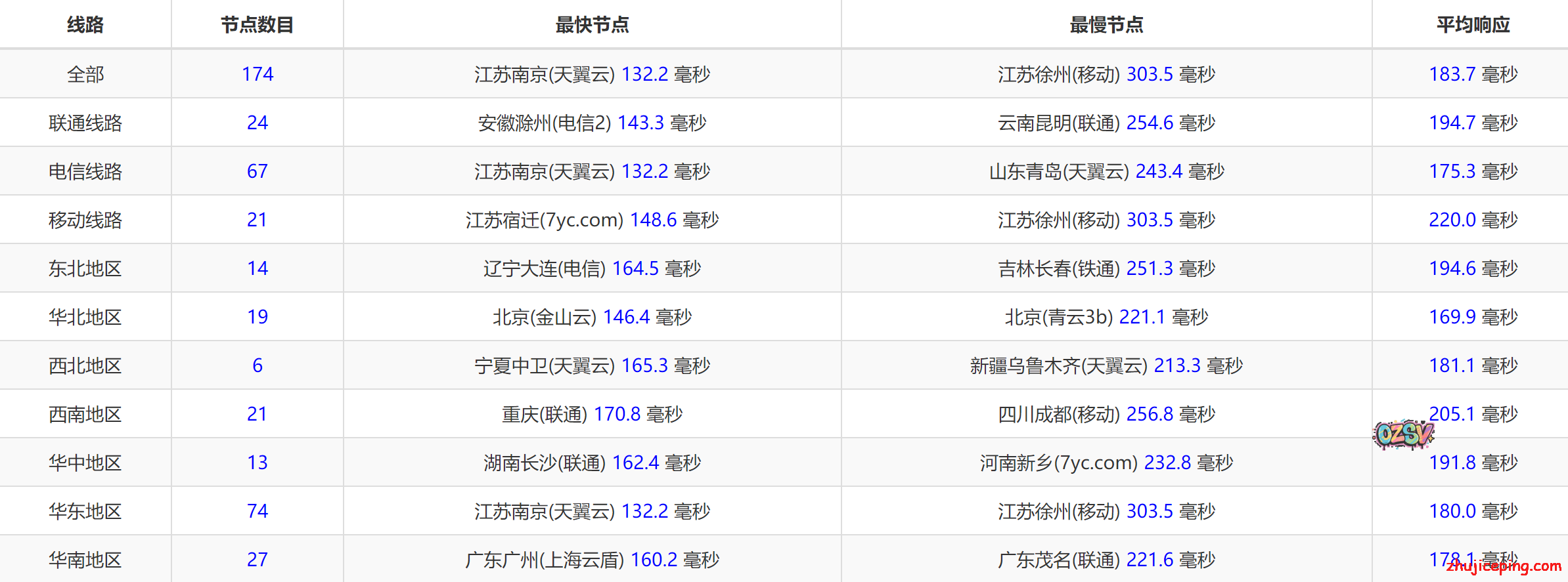 国内IPIP提供的多节点ping的数据: