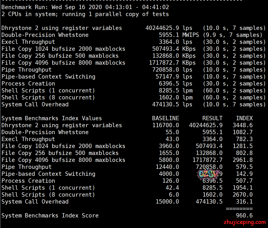 最后丢一个Unixbench跑分吧: