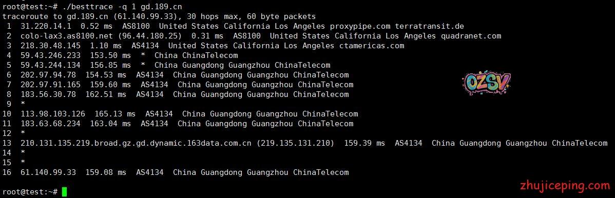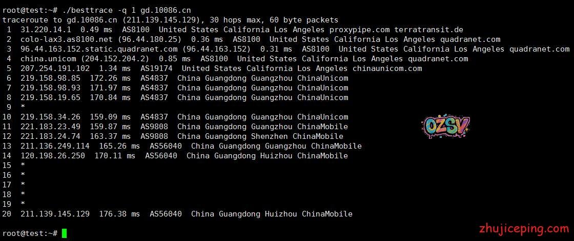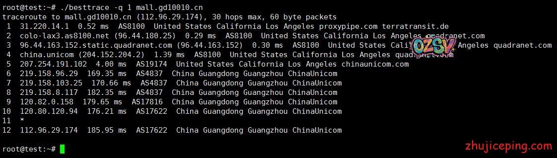 回程,到广州联通,机房出来就是联通洛杉矶,直连: