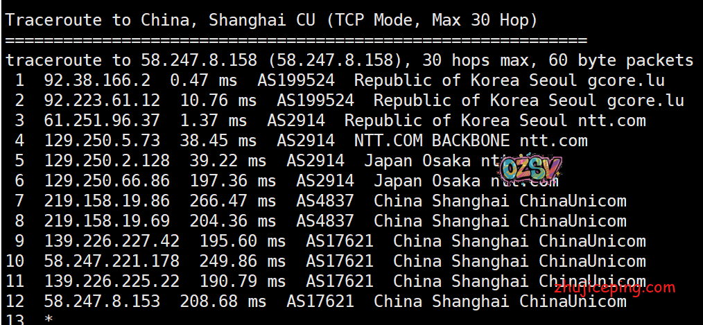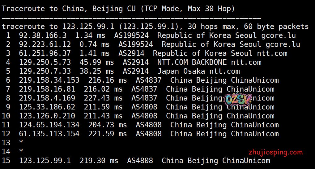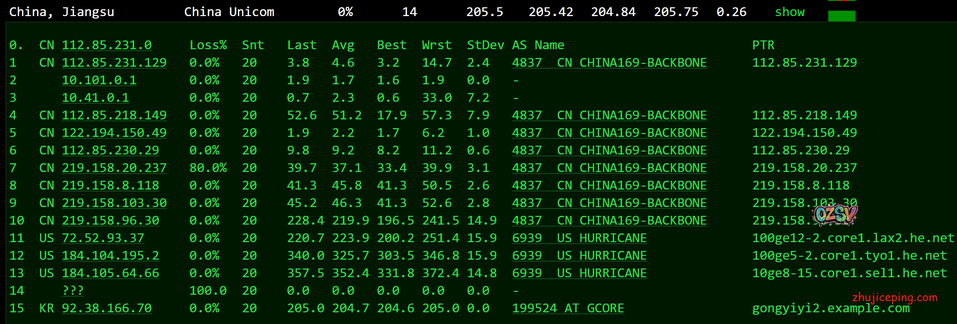 联通:骨干网出国,走HE到洛杉矶,返回日本,去韩国