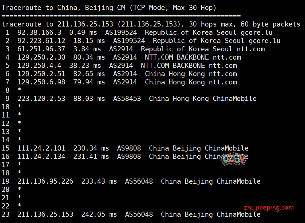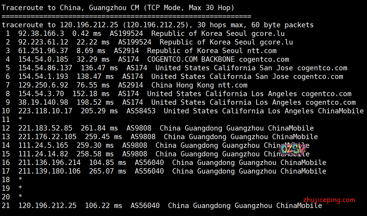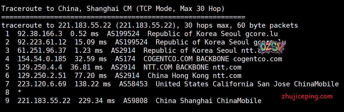 移动:先香港CMI,然后HE到美国,接着回韩国