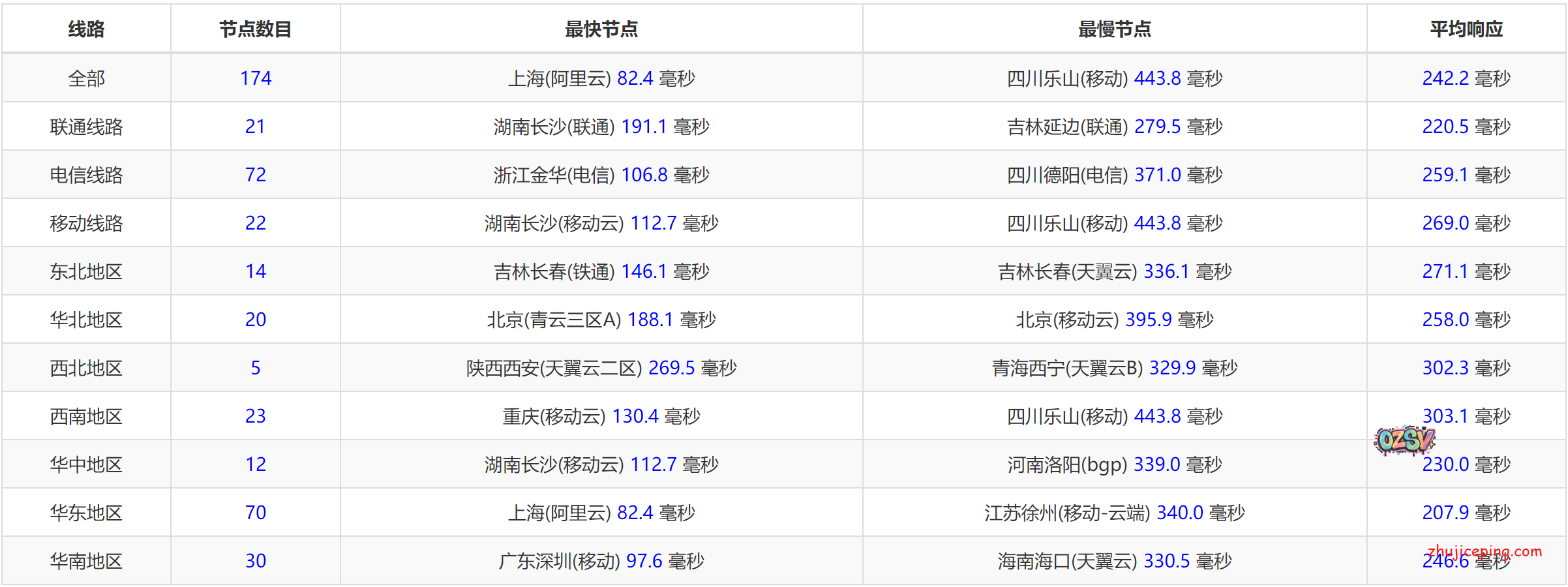 IPIP.NET提供的国内一百多个节点的PING测试数据: