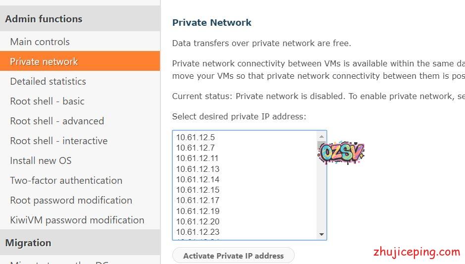 Data transfers over private network are free.Private network connectivity between VMs is available within the same datacenter. Please contact support desk if you experience issues with private network connectivity; we can help you move your VMs so that private network connectivity between them is possible.Current status: Private network is disabled. To enable private network, select an IP address.Select desired private IP address: ….