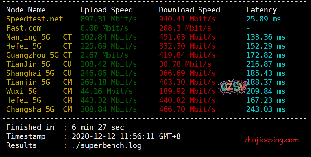 speedtest国外节点能跑到八九百,国内最高这里面就400多Mbps: