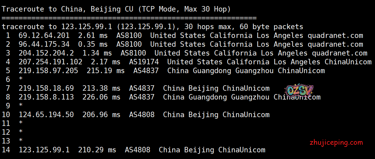 回程,到中国联通,洛杉矶联通直连回国: