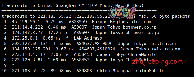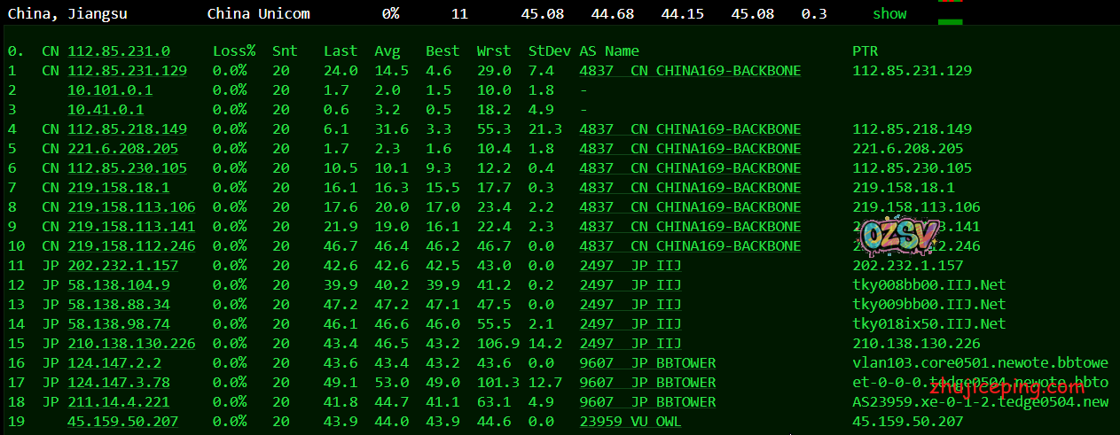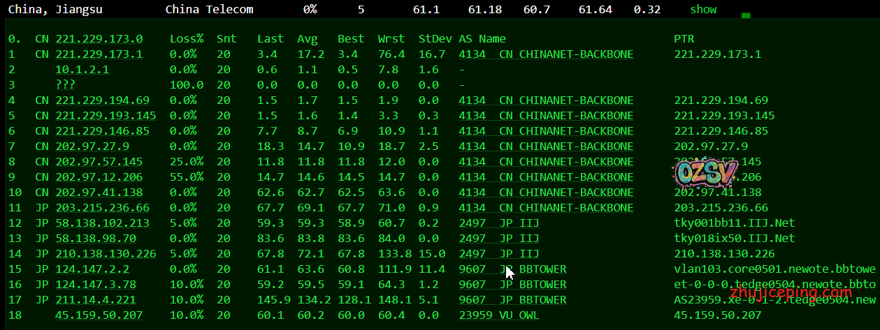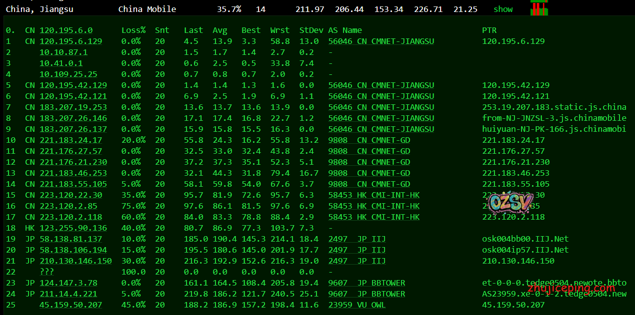国内去程,江苏电信、江苏联通,直接骨干网接IIJ,江苏移动,移动的固定模式从香港CMI出去接IIJ,整体来说也是非常不错的: