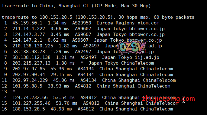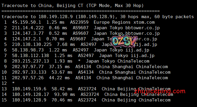 回程,到中国电信,从机房(bbtower)接iij然后直连回国,舒爽: