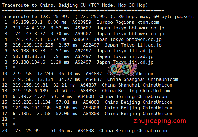 回程,到中国联通,从机房(bbtower)接iij然后直连回国,