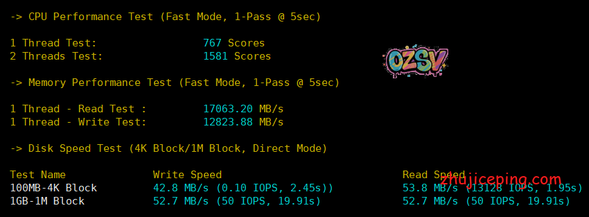 没啥好说的,站长本地测试VPS上的下载文件(可能VPS服务器网络负载很低吧):