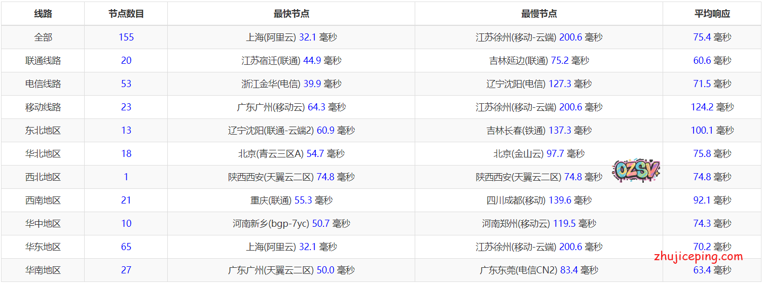 国内PING,IPIP提供,平均75毫秒,部分移动节点拖了后腿: