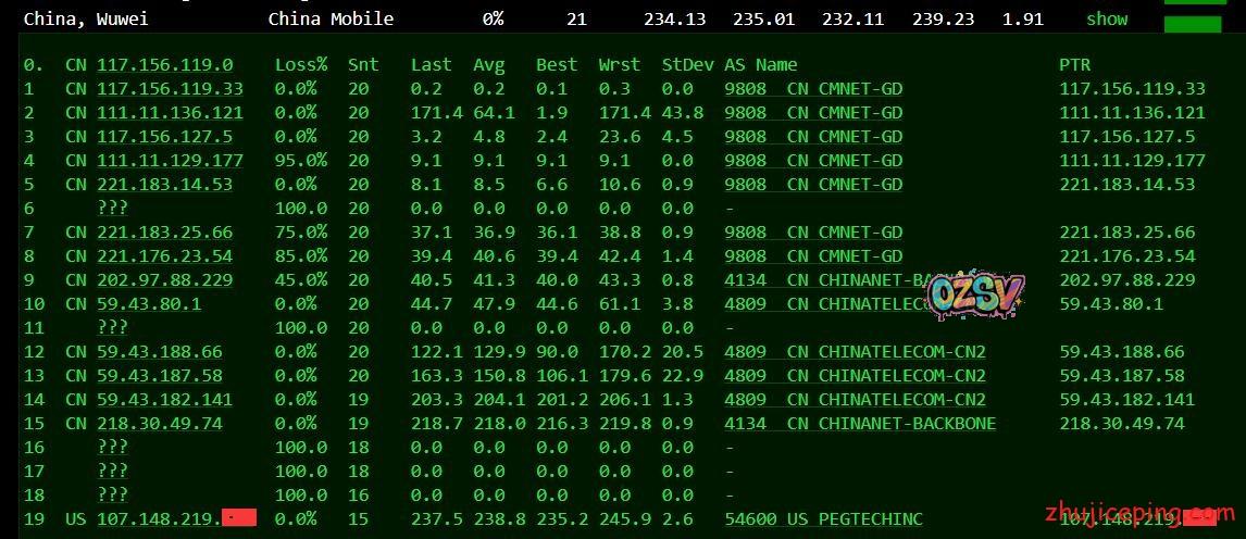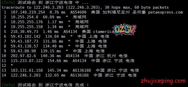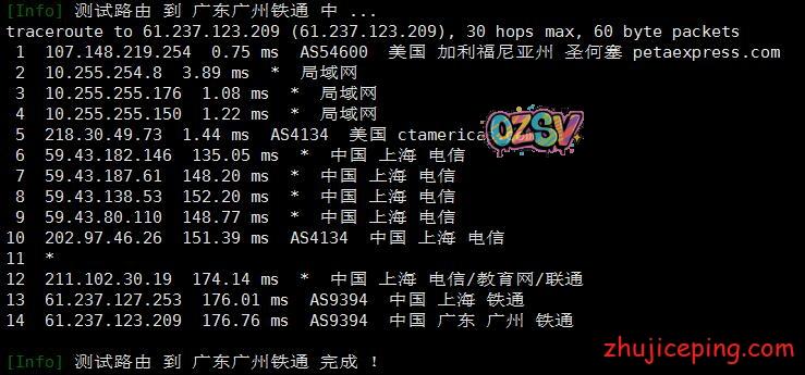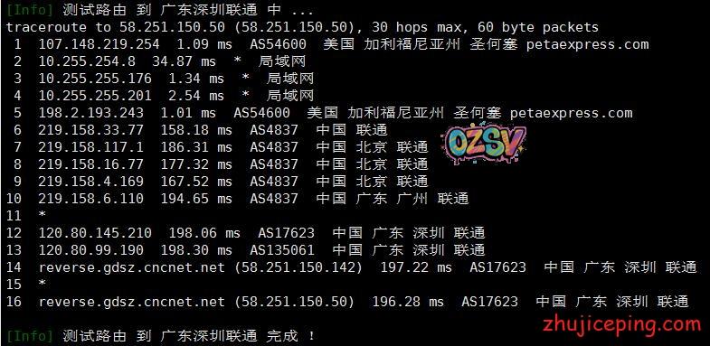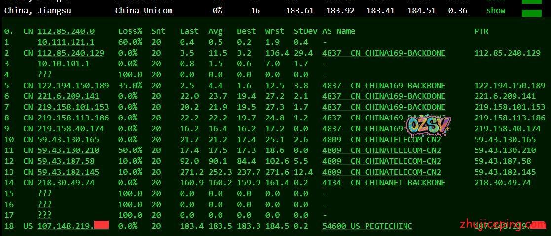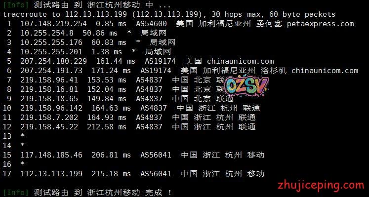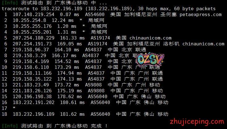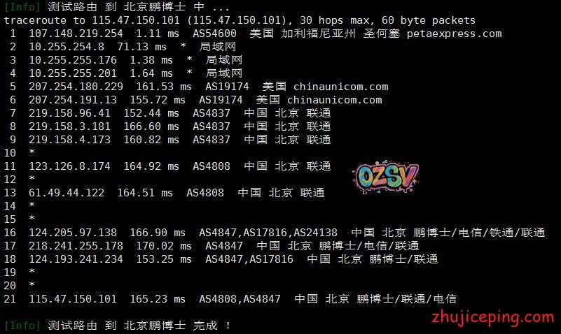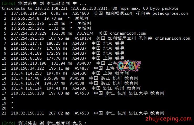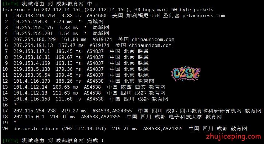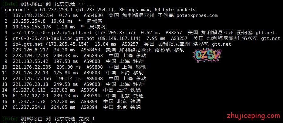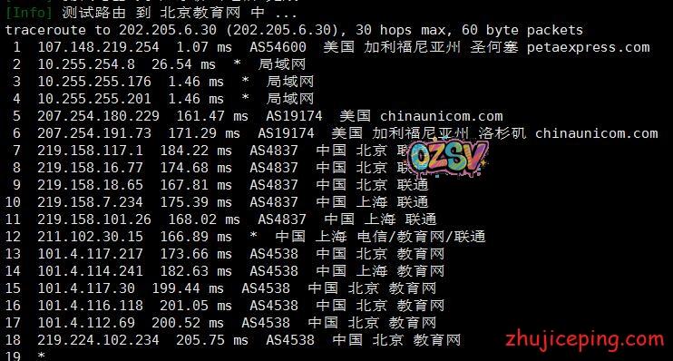 接下来,这里要开始大量粘贴从机房出来回国内多网的路由了,包括:电信、联通、移动、教育网、铁通、鹏博士、BGP等,而且还是多个节点,图多杀猫!