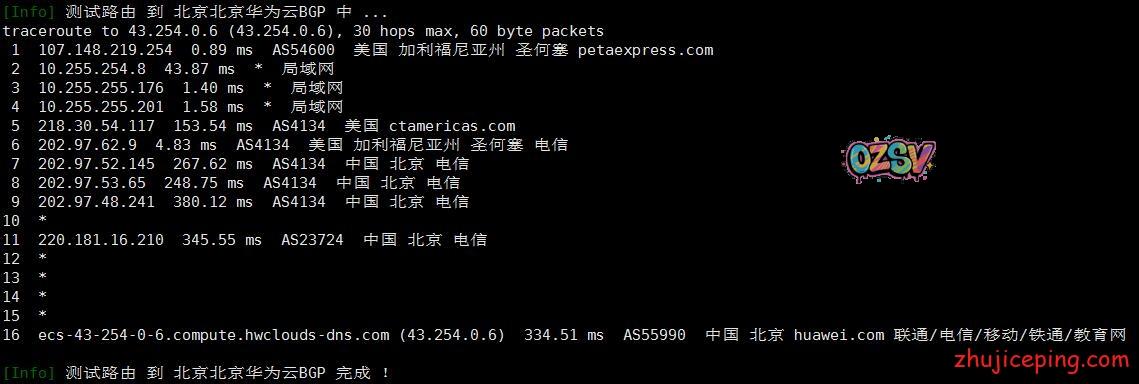 回程,到北京华为云BGP: