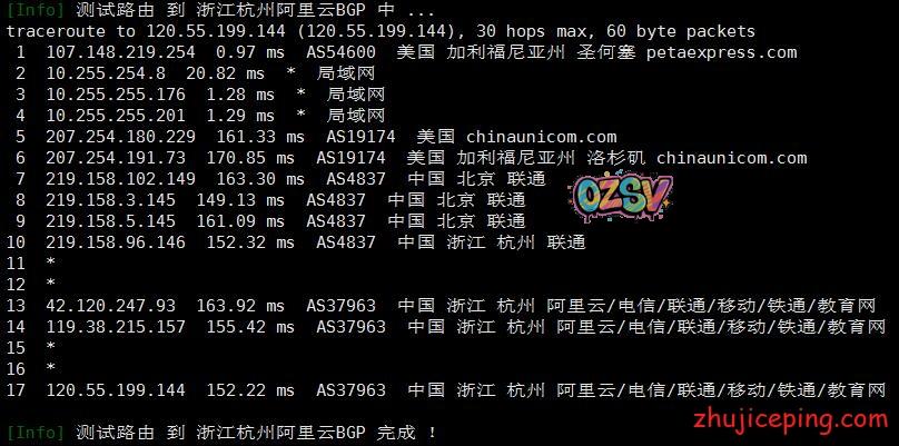 回程,到阿里云杭州BGP机房: