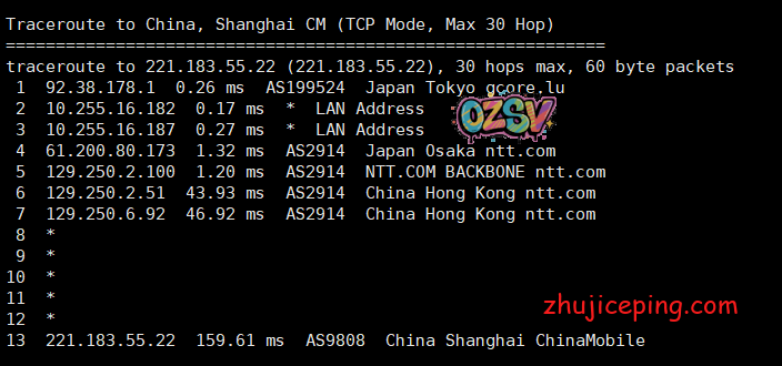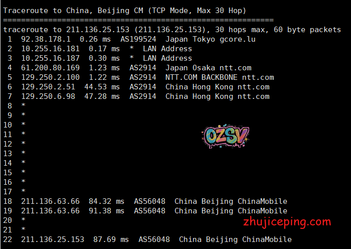 回程,到中国移动: 统一走NTT到香港之后再回国。本来这样是应该没有什么大问题的,但是考虑到移动那国际网络的情况,这个不太确定情况如何,有兴趣实测的给我反馈下吧!