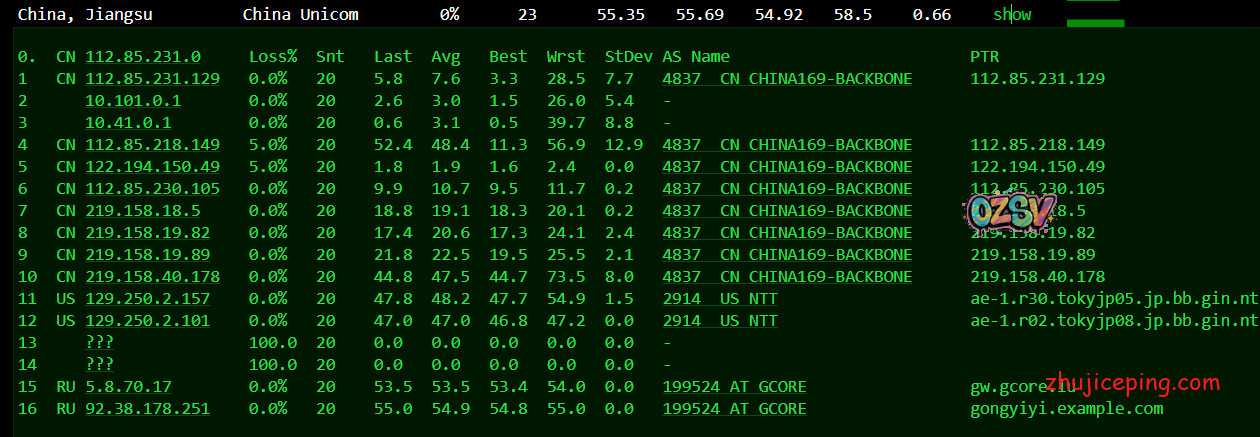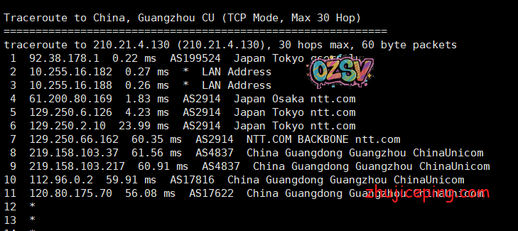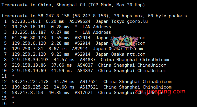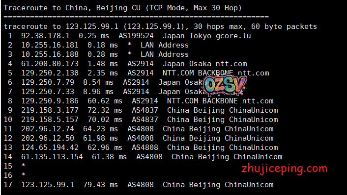 回程,到国内联通: 联通倒是一样,全部从NTT骨干出来到北京、上海、广州,联通的出过优势看起来用这个VPS的话可能效果还行,仅是猜测而已!
