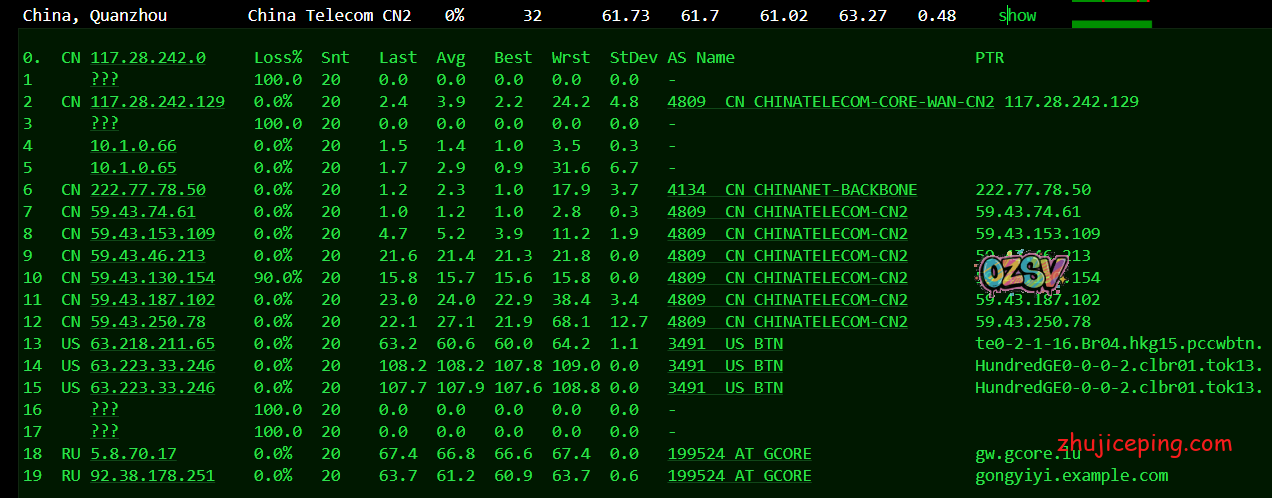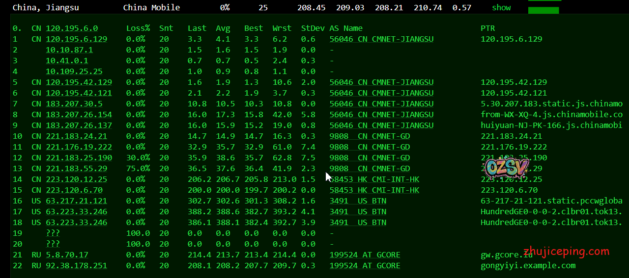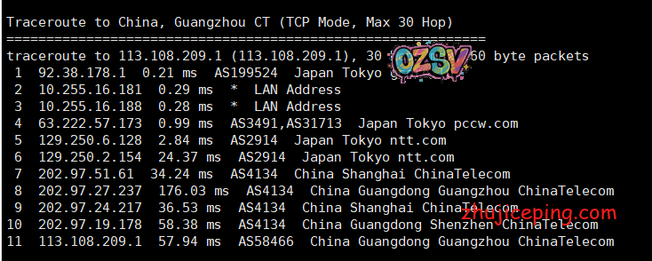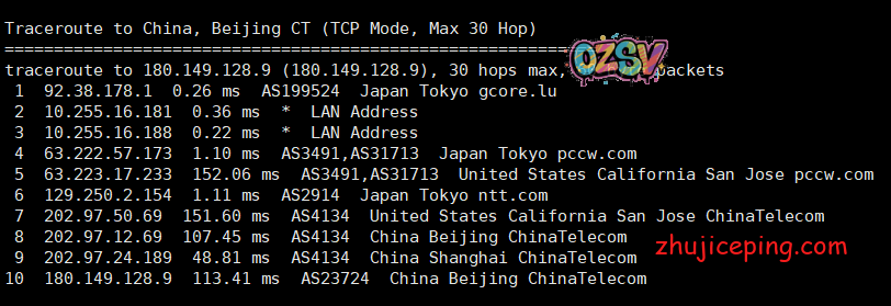 回程,到国内电信:北京这边是绕道美国回来的,上海这边从NTT直接过来的,广州这边是和上海一样然后从上海入口之后国内跑广州的。猜测下是不是说北方电信的效果可能差一些,这个还需要大家实测检查。