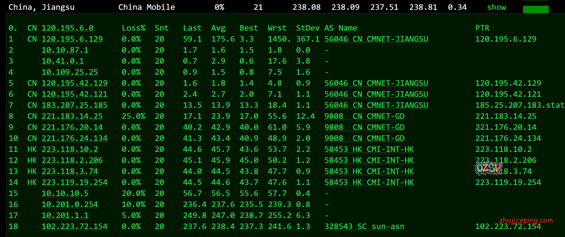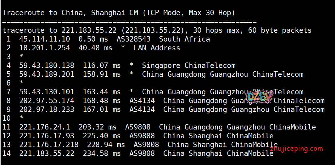 回程,到国内移动:也经过59.43(之前出现过只走直连)