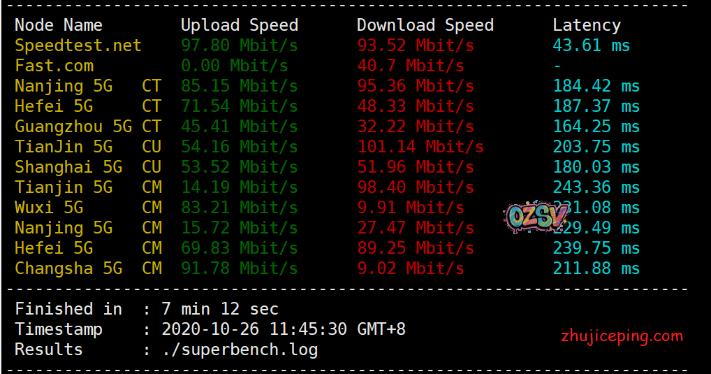 100Mbps的带宽,从我们speedtest跑的测试结果来看应该是没有问题的: