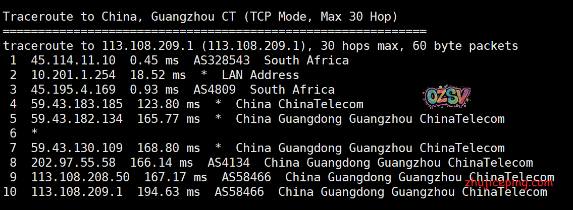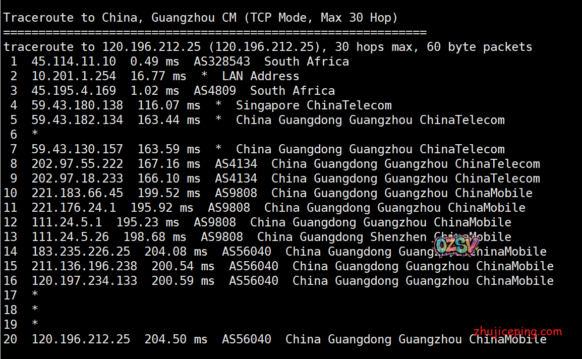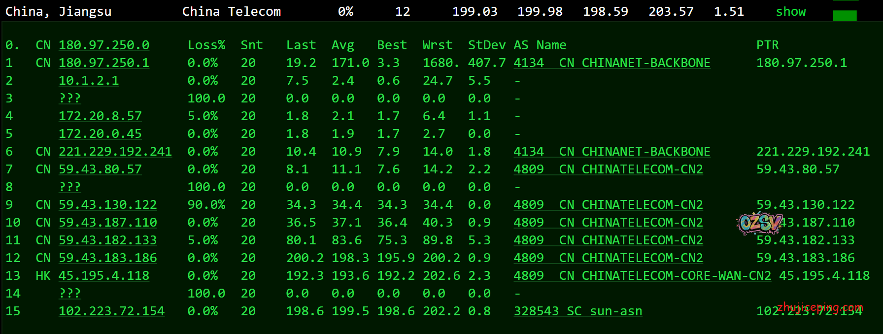 国内IPIP.NET提供的PING,所有地方的平均值大致是203毫秒,这可是中国和非洲之间: