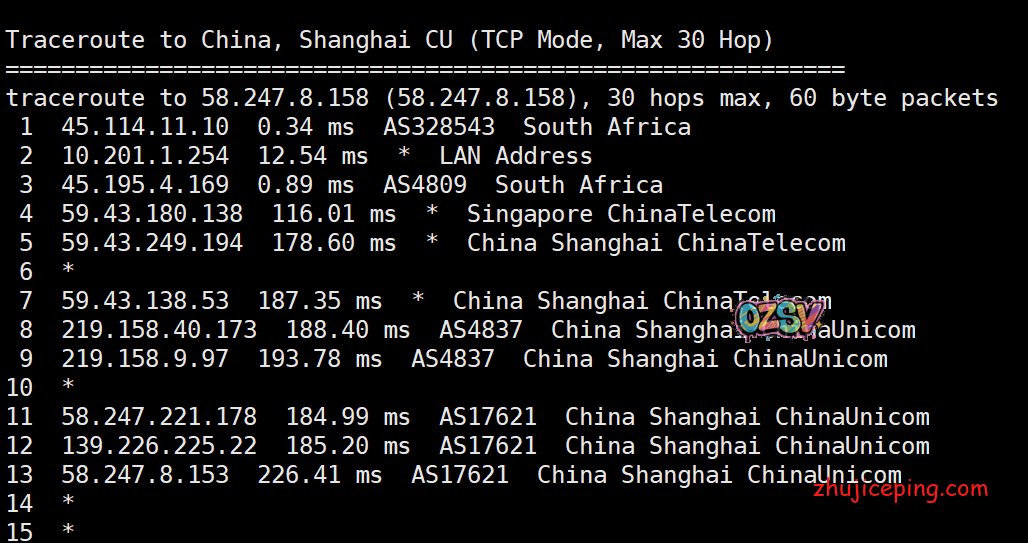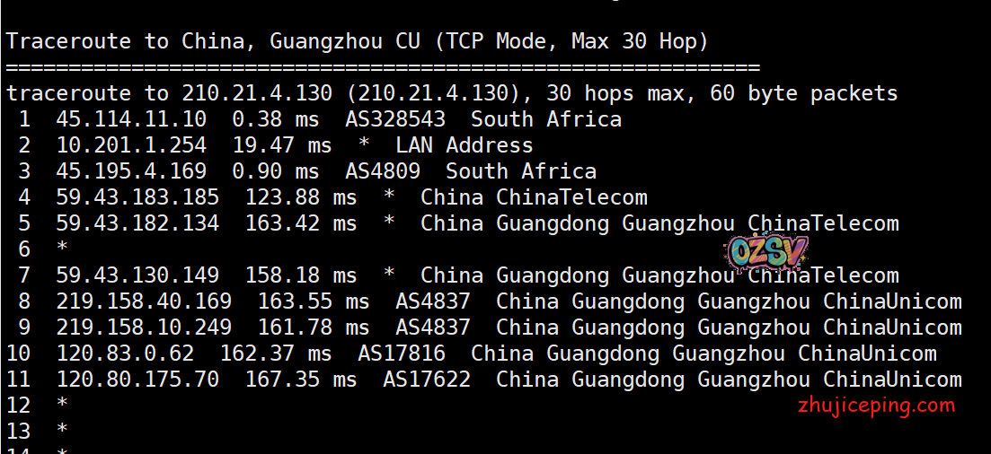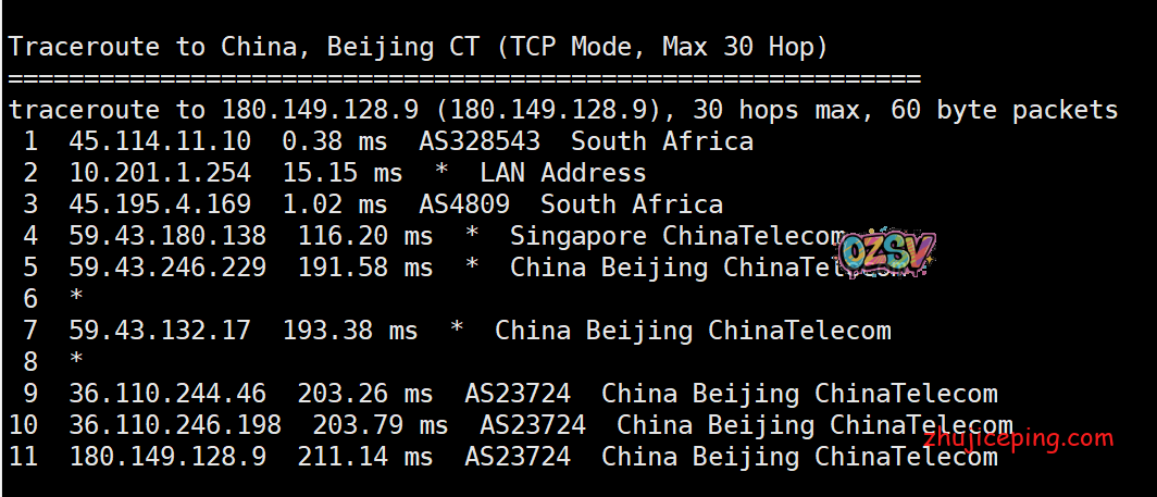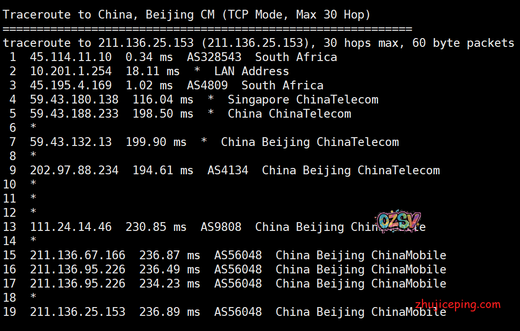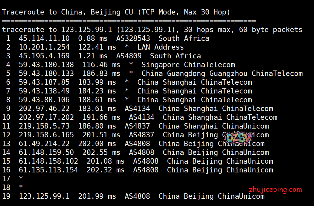 国内去非洲的去程:电信、联通直接走59.43,移动还是万年不变的香港CMI