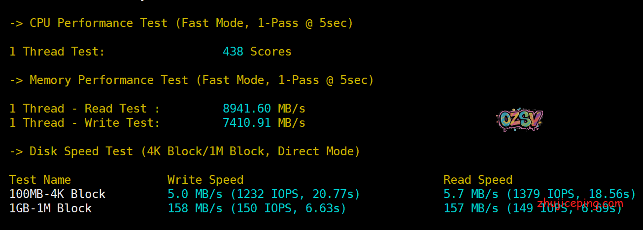 CPU线程测试,内存读写,硬盘I/O,都只能说马马虎虎: