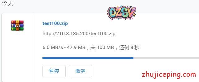 存放在本次测试的VPS上面的文件,我这边下载最高速度大致有6.7M/S: