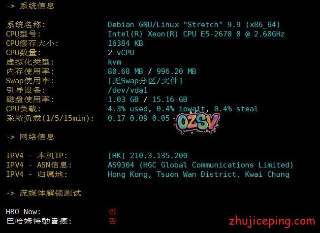 CPU为E5-2670,2.6G主频,香港原生IP: