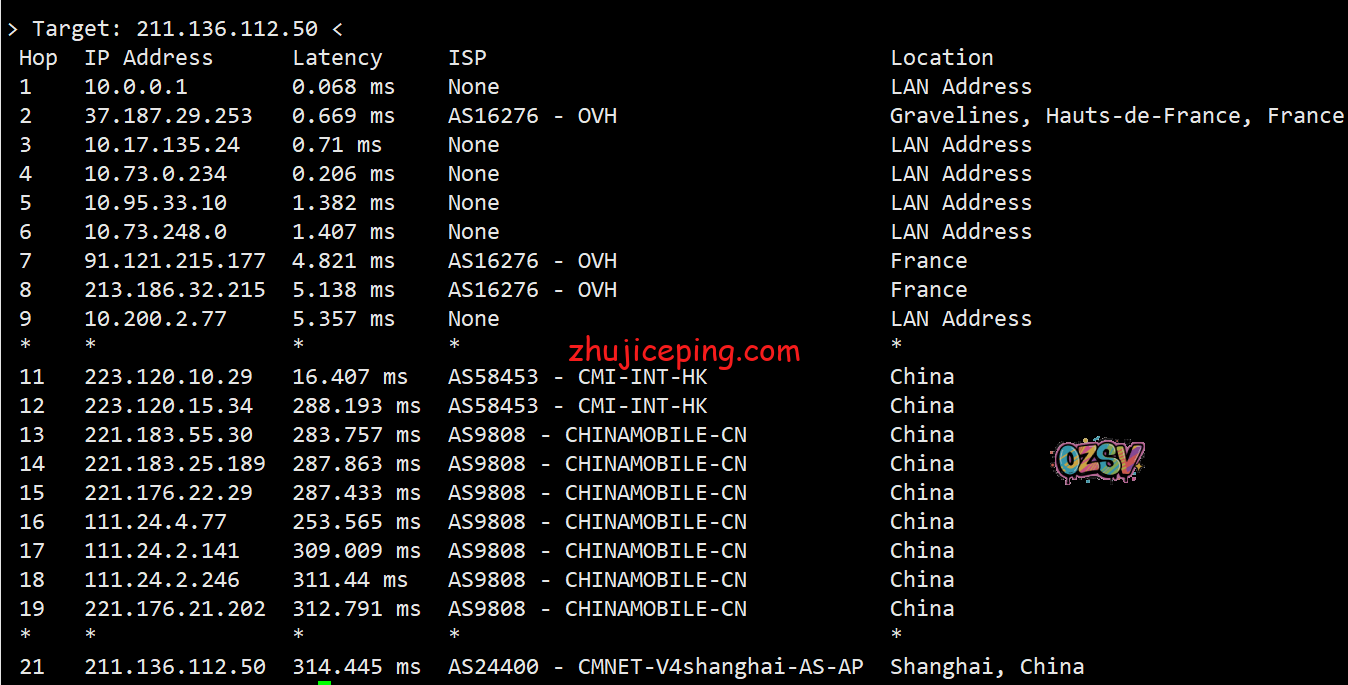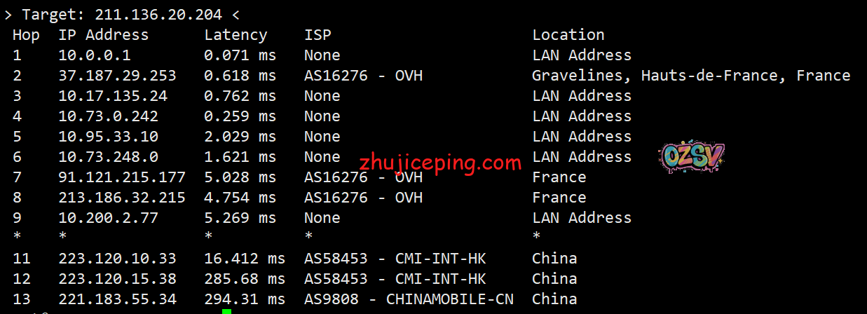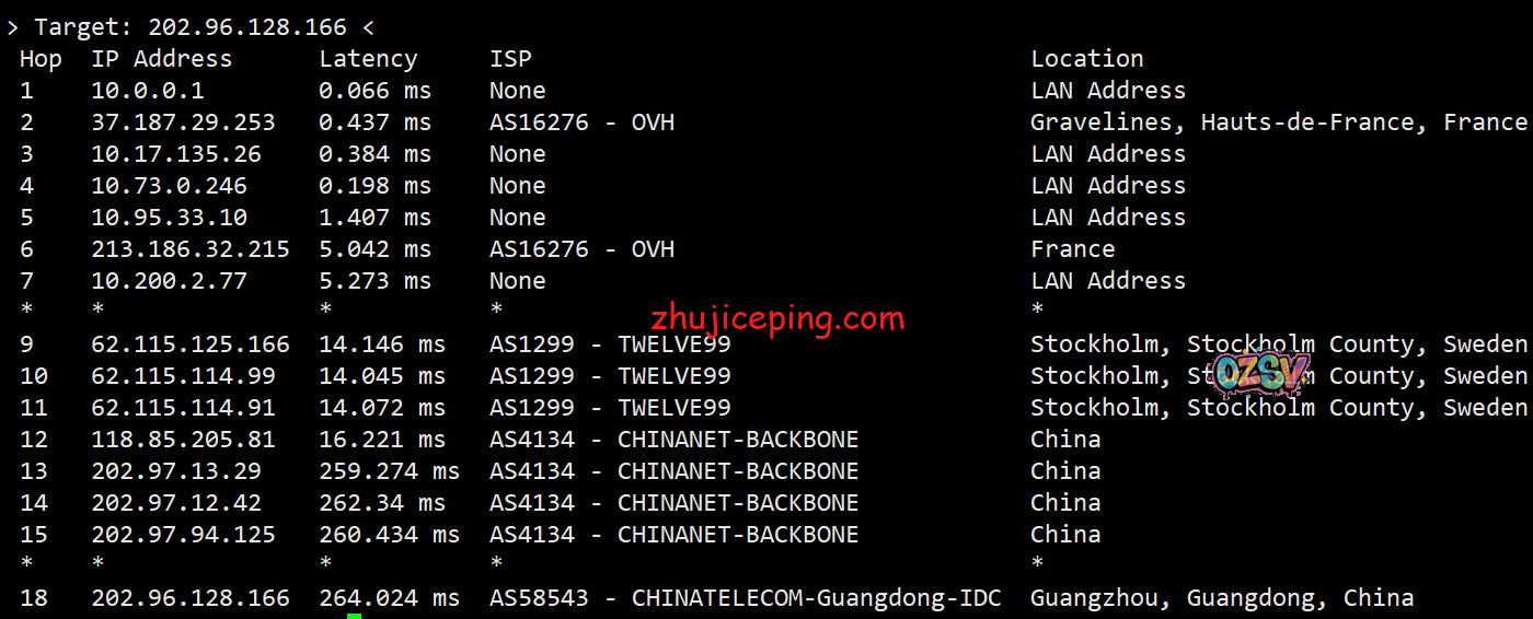 广州方向:法国到瑞典走的是teliea然后过国内电信骨干