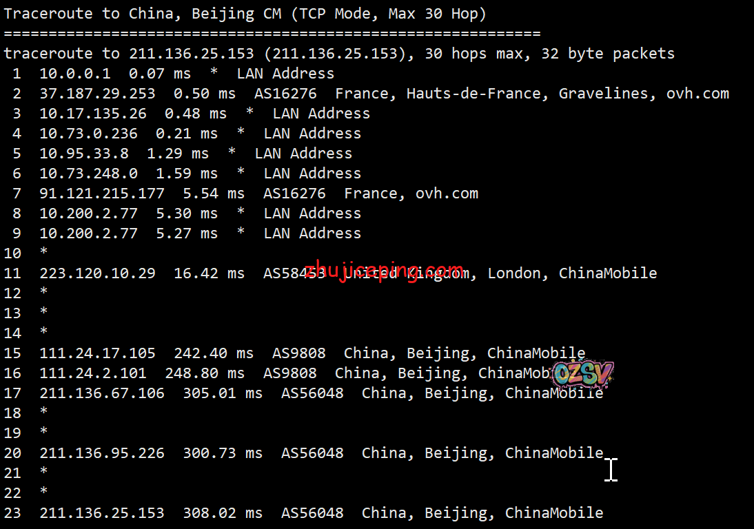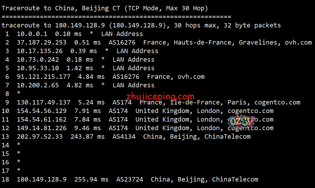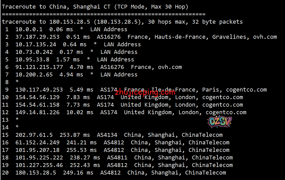 北京和上海方向:法国到英国走cogentco然后到国内电信骨干