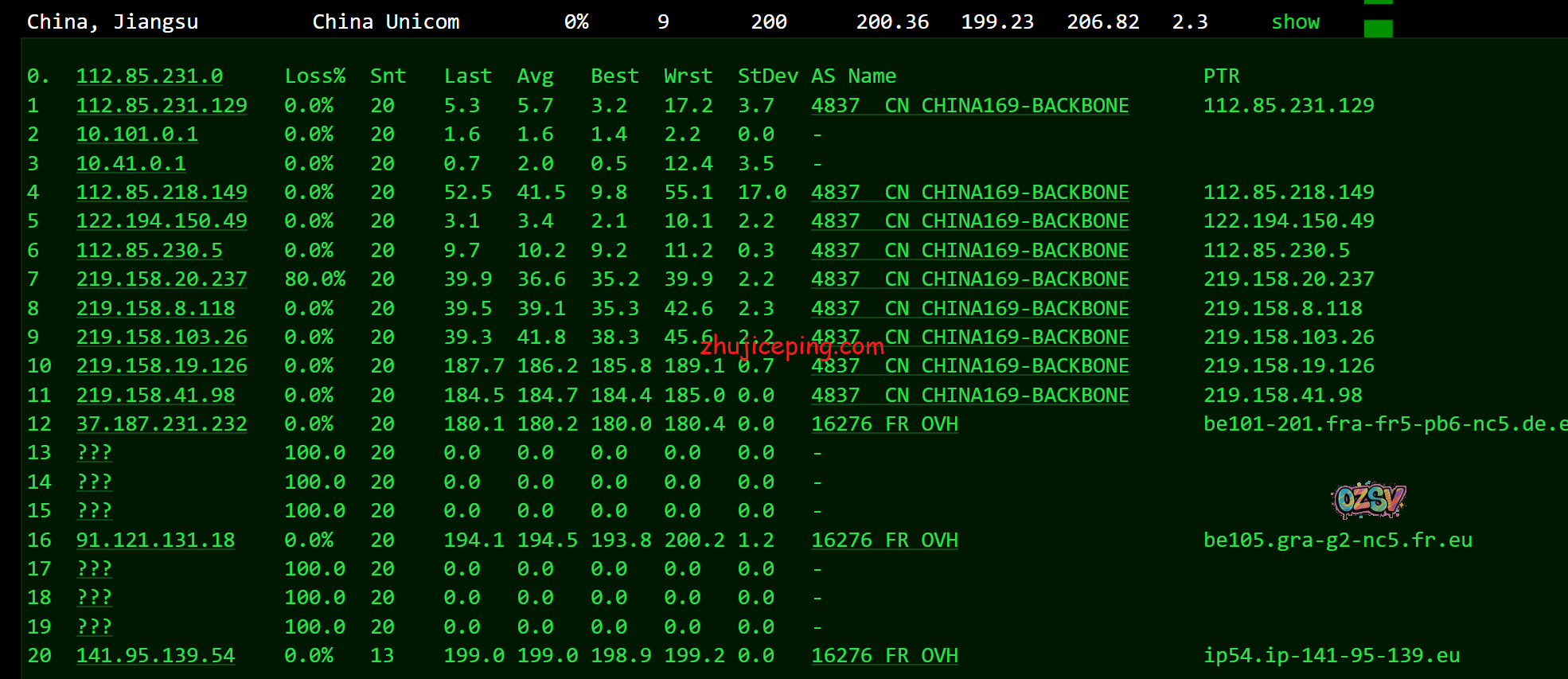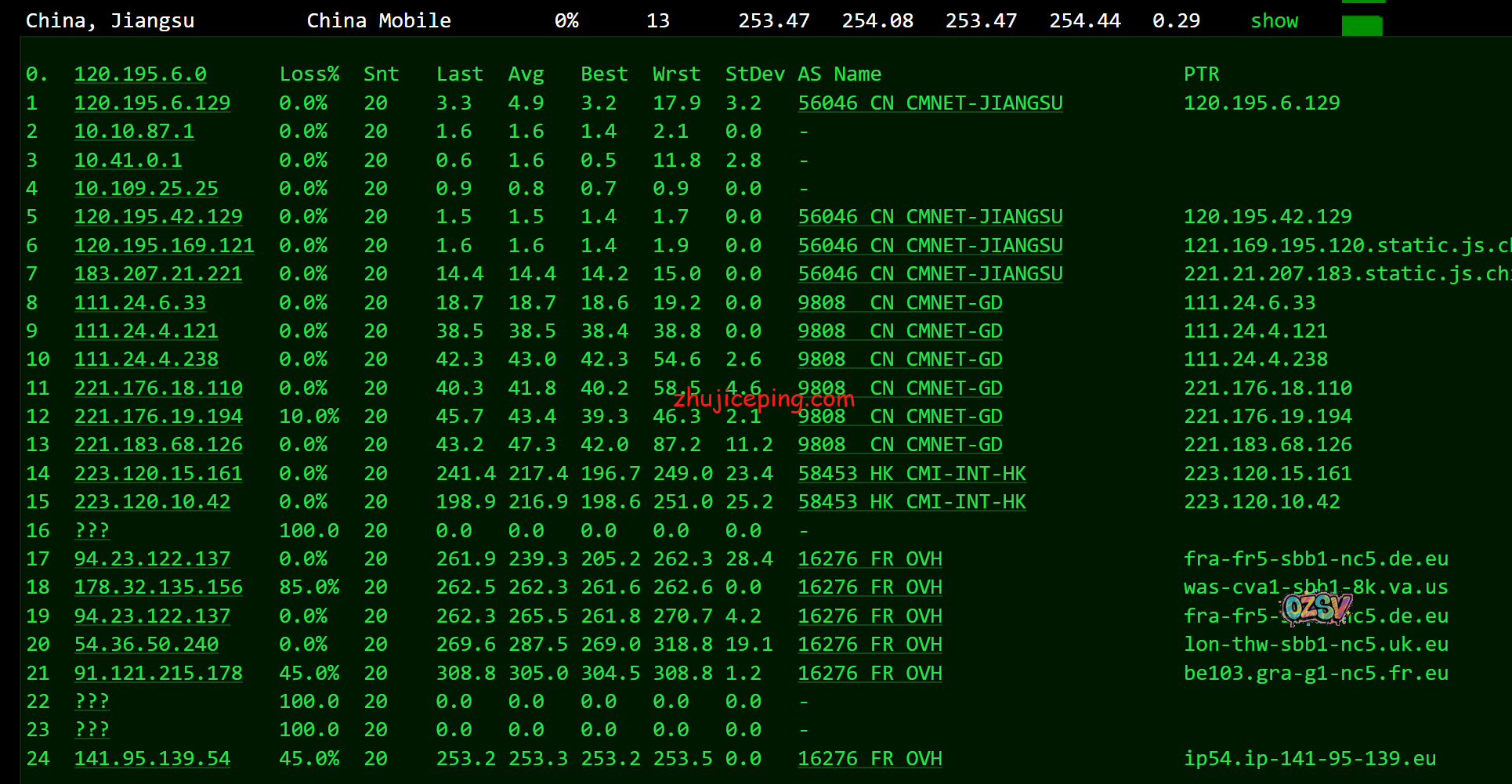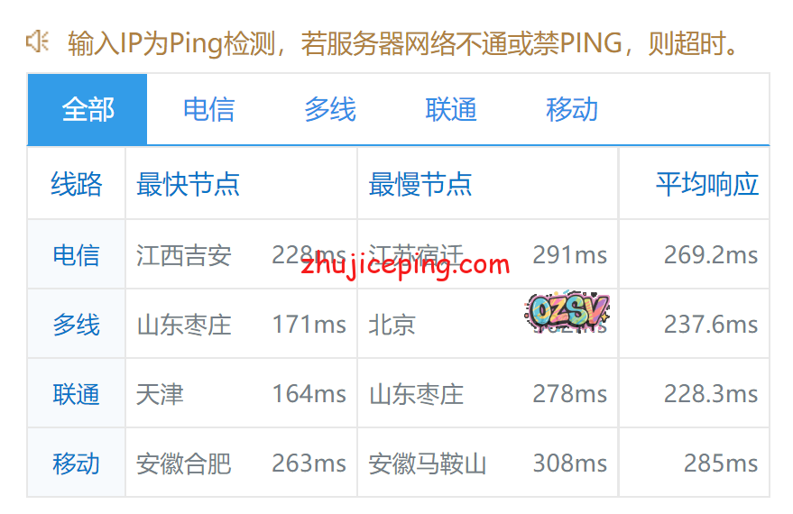 国内ping.chinaz.com提供的接近八十个节点的测试数据如下: