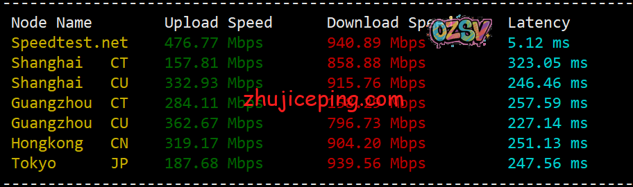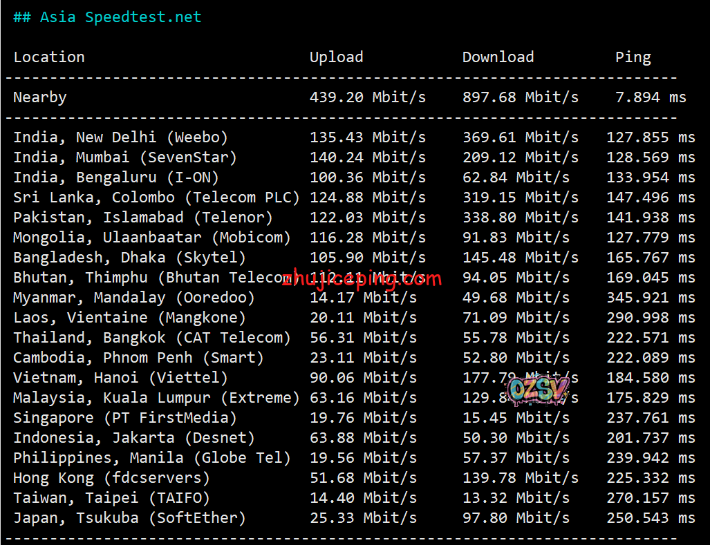 亚洲除了中国大陆之外的其余节点的测试,上下行大致看下吧: