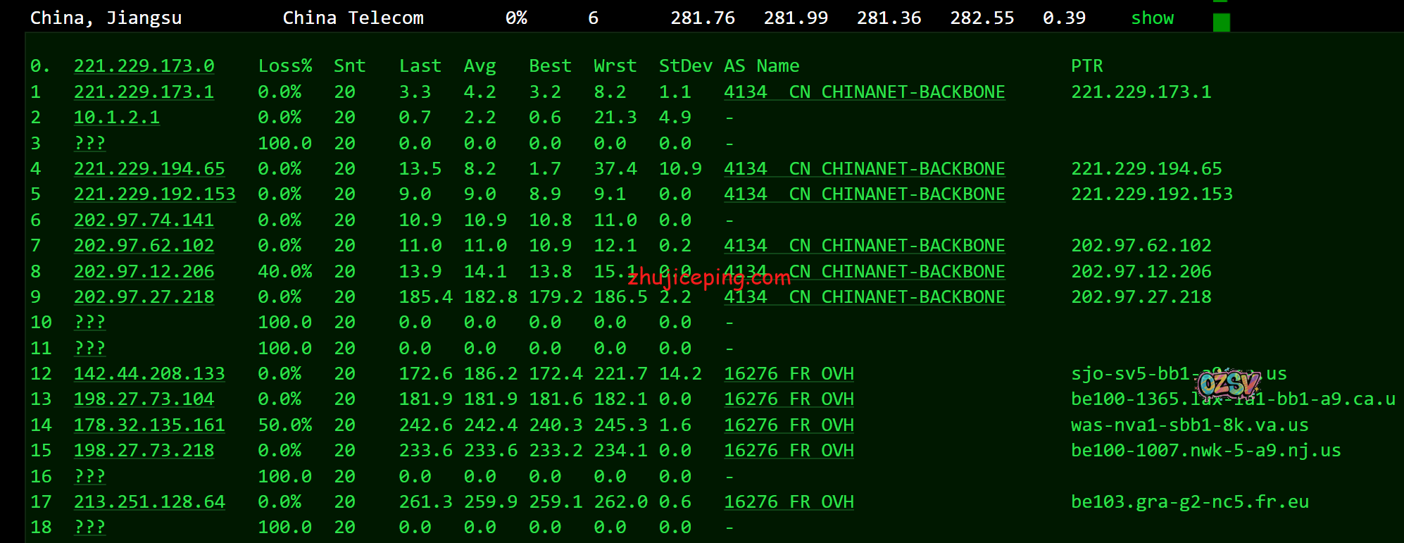 电信去程,我们看到骨干网到了美国然后再去的欧洲: