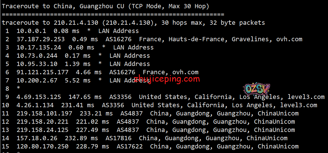 广州方向:法国到美国洛杉矶走level3后走as4837回来