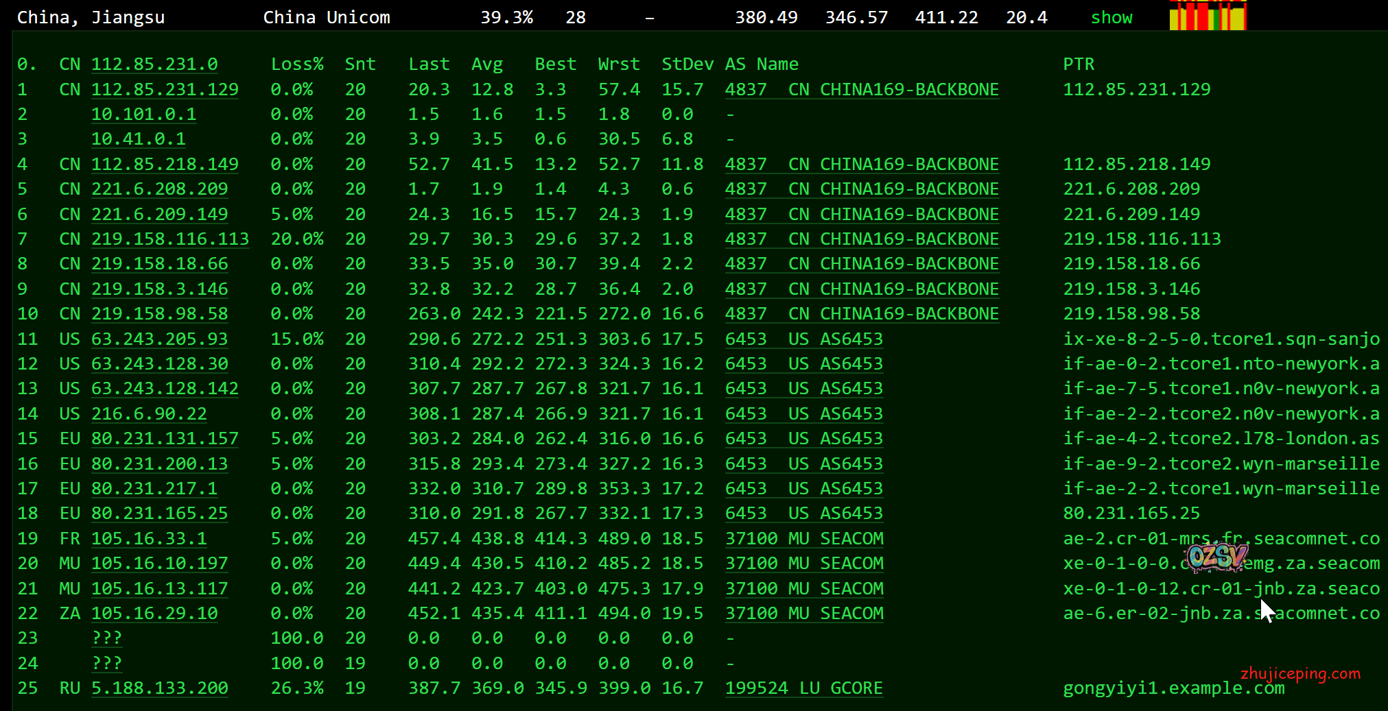回程,到中国联通: 有没有亮瞎你的钛合金狗眼? 联通特么也是走的CN2回来的!