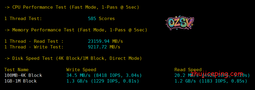 这是是单线程测试5秒、内存读写、硬盘I/O简单测试:
