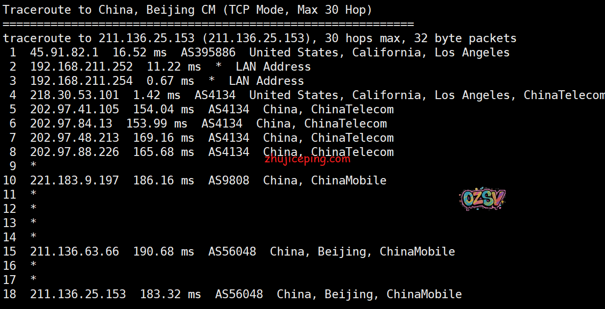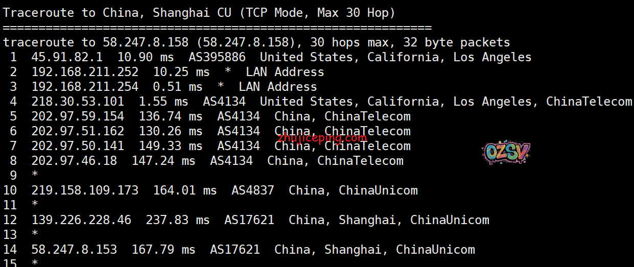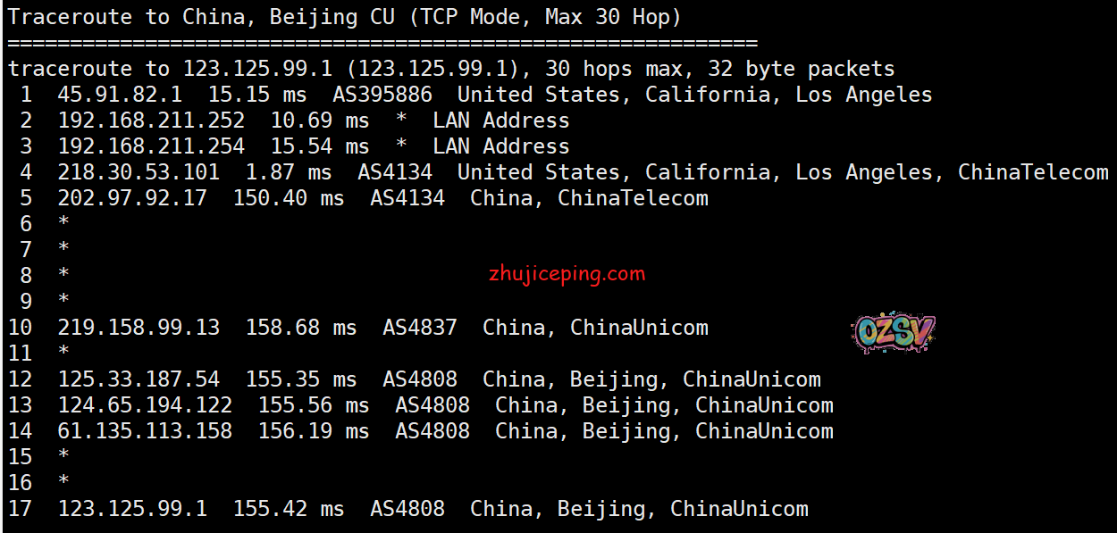 回程,到中国联通:走电信的链路直连回国
