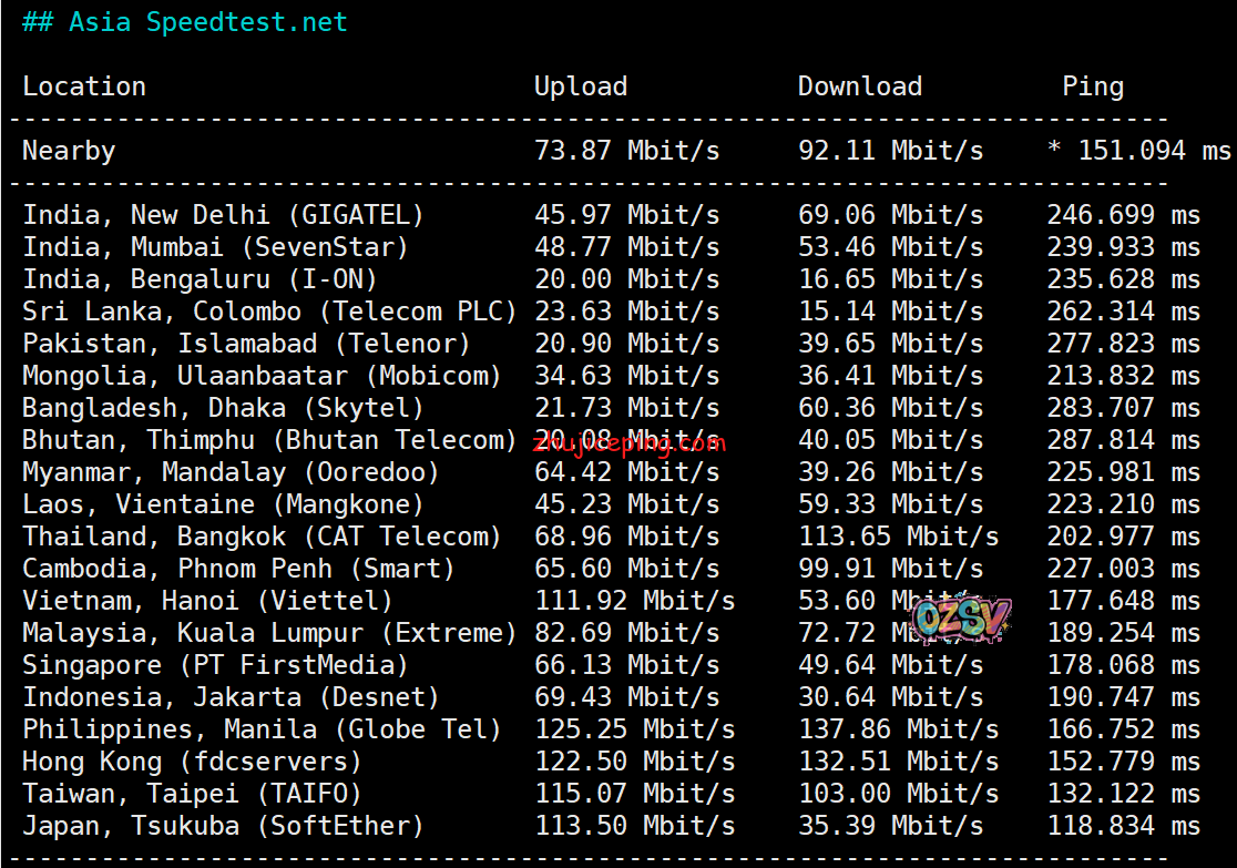 亚洲区域其他国家和地区跑不到150Mbps: