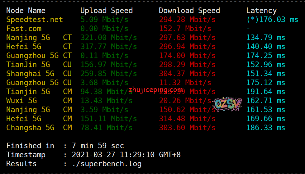 国内节点测试上下行带宽,大致是300Mbps:
