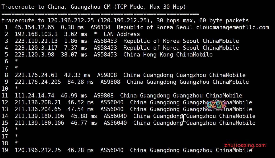 回程,到中国移动,部分去了下日本然后回国,也有直连: