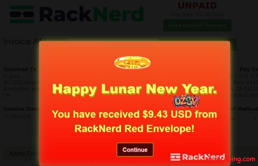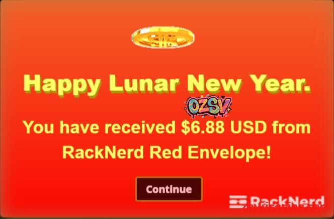从现北京时间1月17日(早上6点开始)到2月16日,不管是racknerd的新注册新用户还是老用户,(1)登录后台都会收到系统自动发送的一个红包,最高18美元(账户credits);(2)每下一个新单,都会收到一个红包(账户credits,多下单,多得红包,没有限制。红包是程序随机发的,额度也是随机,立即到账的,无需发ticket处理!