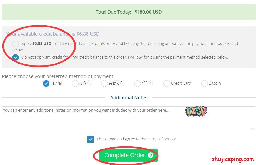 登录账户送的红包,下单送的红包一起叠加,直接在billing里面扣掉,自己这样就直接出的现金是最少的。比如我前面红包中奖了6.88美元,下单那笔180美元的时候我勾选一下使用那个6.88的credits,然后再下单,就会这样算:180-6.88-9.43=163.69.