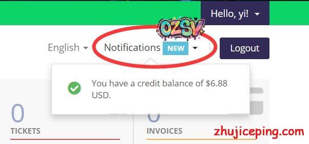 在购买产品时获得的红包,会自动放入账单减掉账单的总金额,也可以使用之前登陆时获得的红包金额继续减掉账单总金额,账单上的Credit显示0是由于WHMCS的API导致的,跟红包无关,可以忽略那个credit 0。
