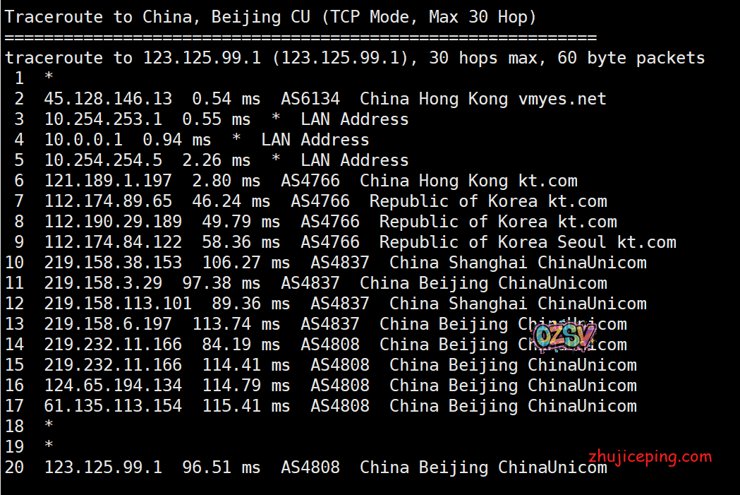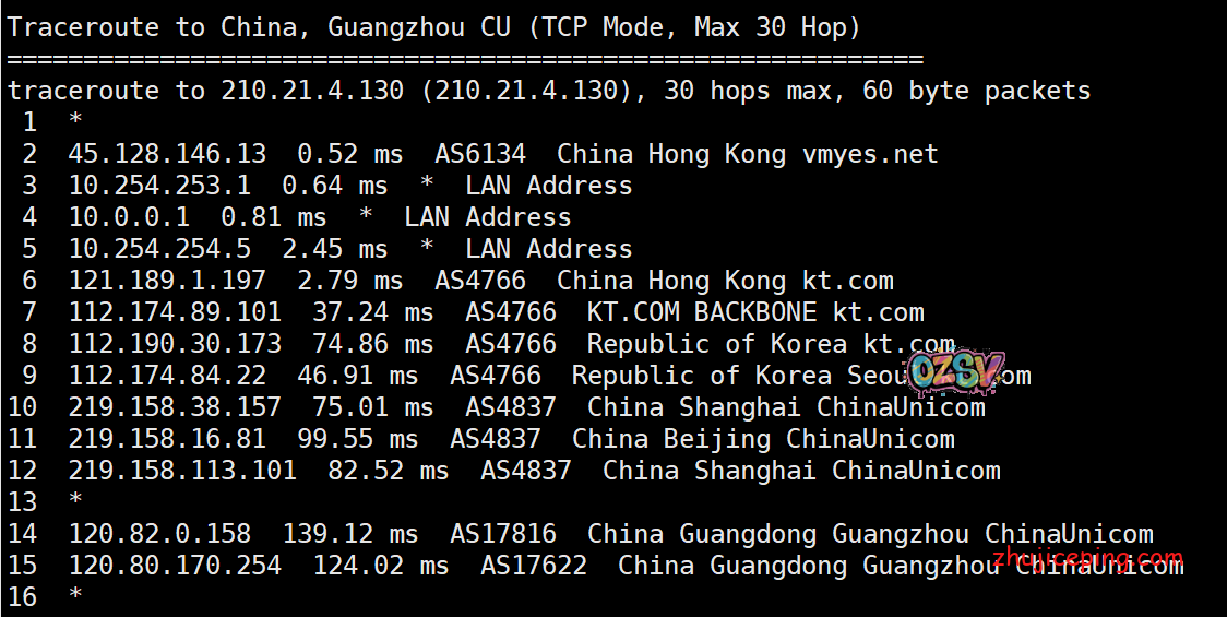 回程,到中国联通:绕了一下韩国KT线路后回来的