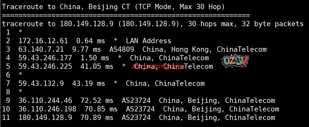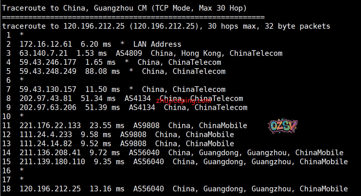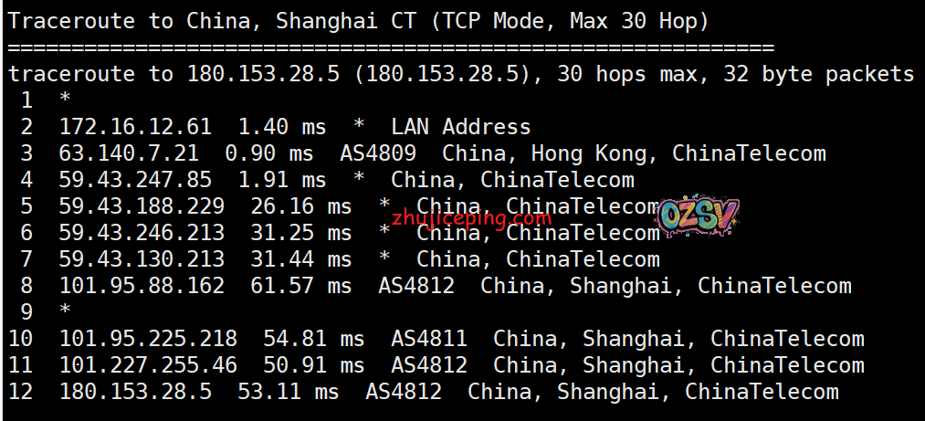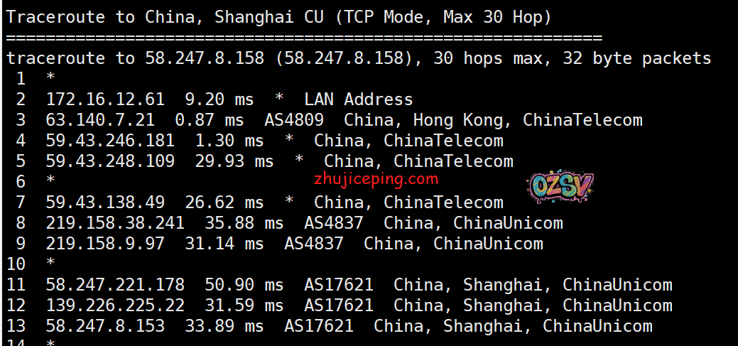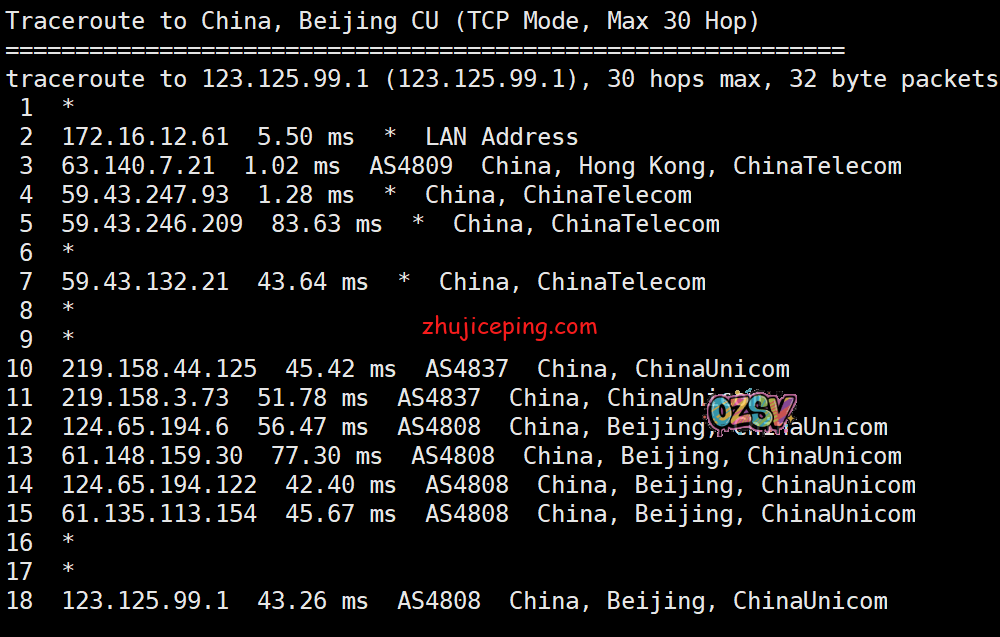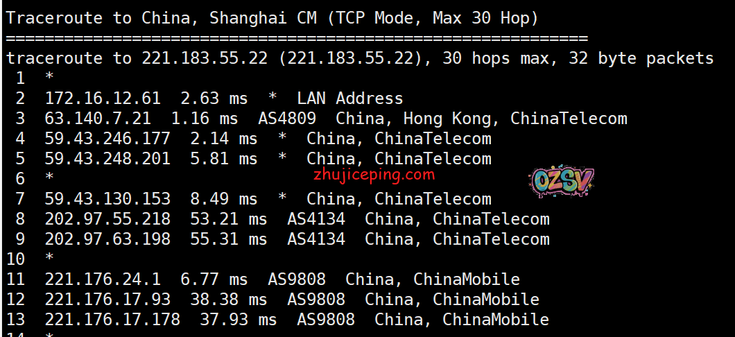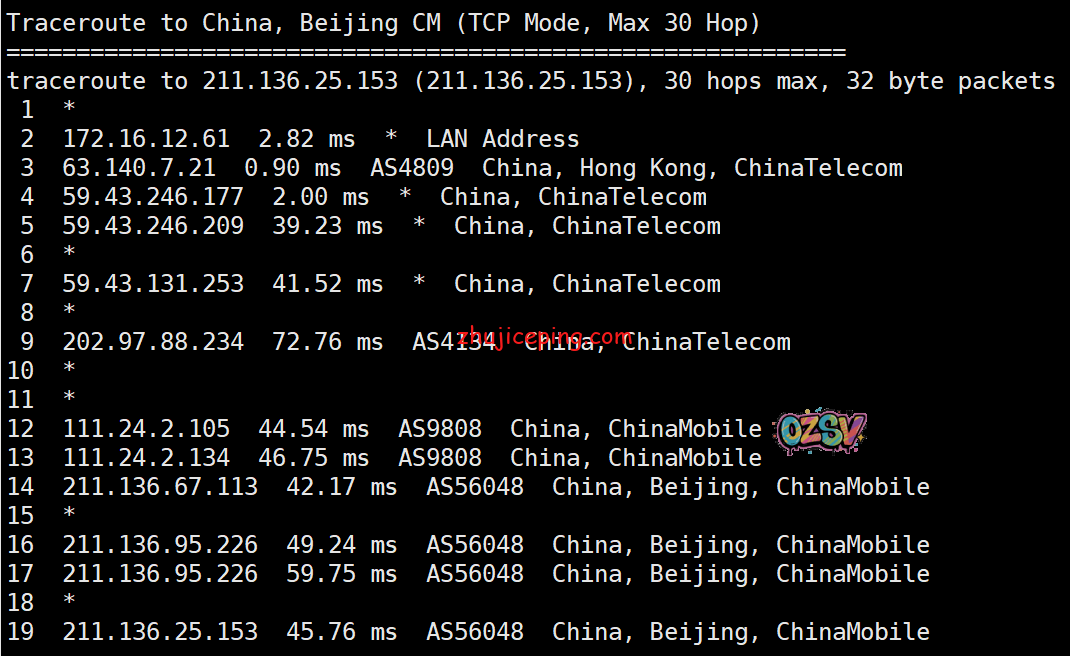 回程,到国内中国移动:全部是借道过电信cn2的59.43