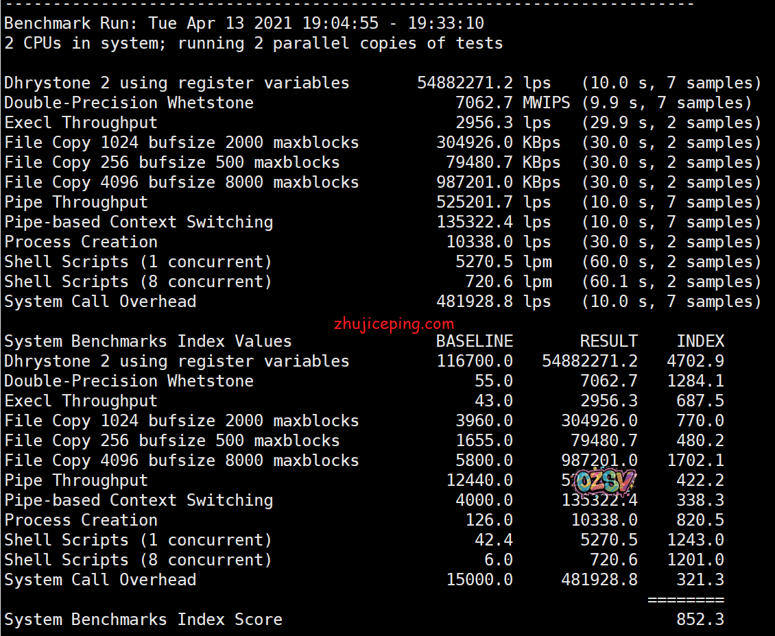 本次测评用的是2G内存、2核、10M带宽的VPS,平均I/O在84MB左右: