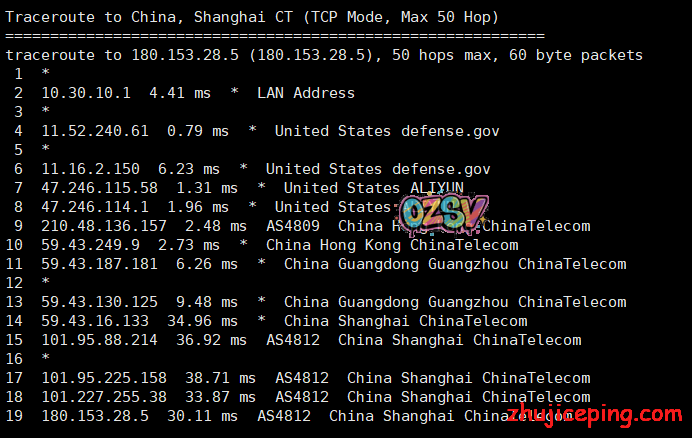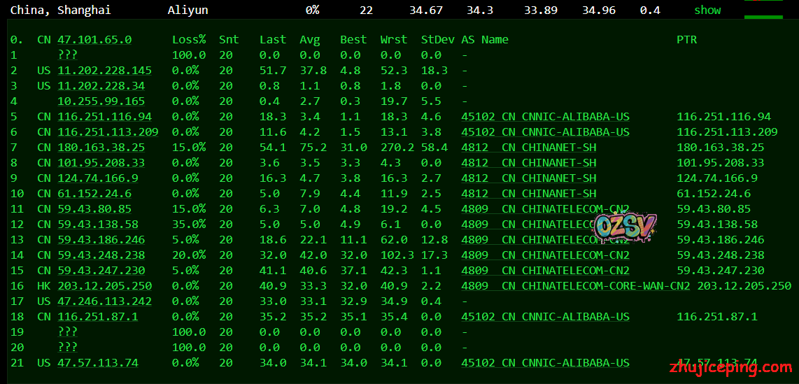 上海阿里云,走电信CN2过去: