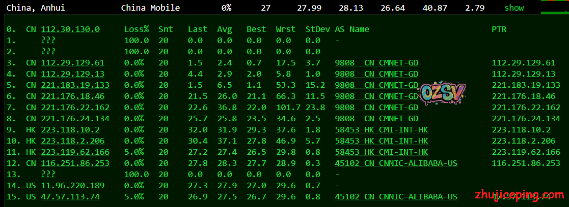安徽移动,广东走CMI去香港机房: