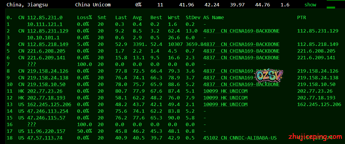 江苏联通,骨干网直连香港联通: